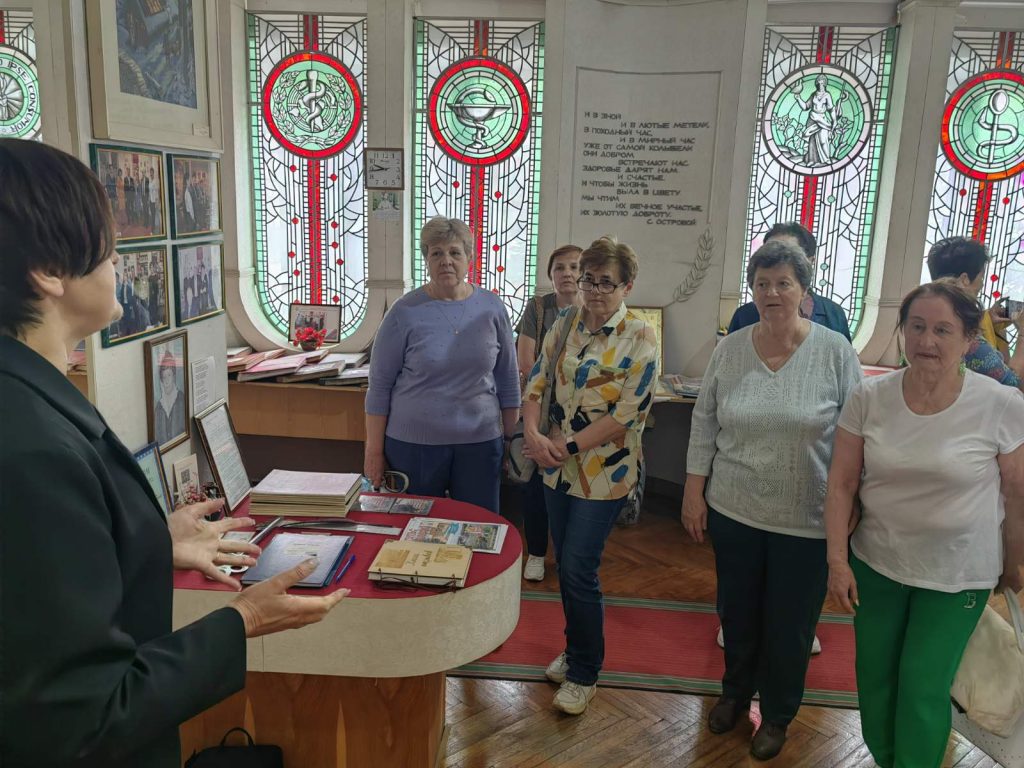 Посетители отделения дневного пребывания для граждан пожилого возраста побывали в музее УО «Борисовский медицинский колледж». Экскурсия началась с приветственного слова экскурсовода, который рассказал о истории колледжа и его музее. Затем гости ознакомились с медицинскими инструментами военных лет, старинными книгами и фотографиями выпускников учреждения. Пожилые люди с интересом рассматривали экспонаты, вспоминая свои студенческие годы, задавали много вопросов и интересовались развитием современной медицины.