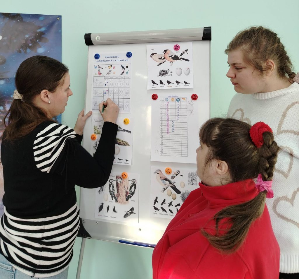 В отделении дневного пребывания для инвалидов с умеренными и тяжелыми множественными нарушениями ГУ «ТЦСОН Борисовского района» третий год подряд реализуется уникальная программа реабилитации через наблюдение за птицами. Посетители отделения не только открывают для себя мир пернатых, но и ведут календарь наблюдений, обсуждают, какие птицы должны прилететь с приближением весны, приносят корма и ежедневно наполняют кормушки. В отделении появились новые традиции, связанные с бердвотчингом: «Синичкин день» — осенняя подготовка кормушек, «День первой ласточки» — весенний праздник с изготовлением творческой поделки, фотовыставка с чтением стихов о птицах «Птицы за нашим окном». Наше увлечение может стать реабилитационной терапией, соединяя посетителей отделения с бесконечным миром природы в ее самых разнообразных проявлениях.
