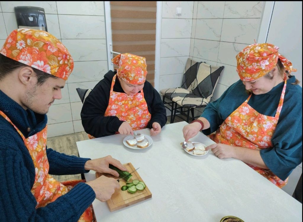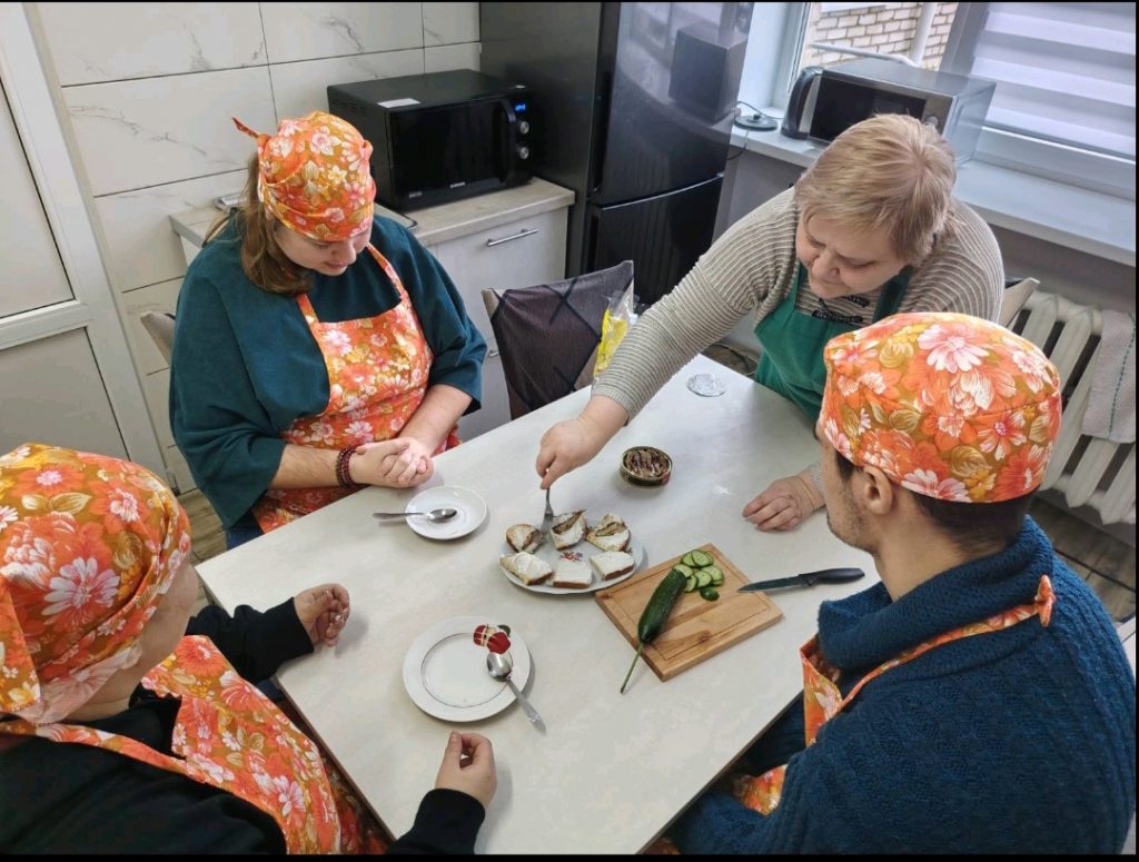 В преддверии Рождества в ГУ «ТЦСОН Борисовского района» прошло занятие в рамках проекта «Обучающая кухня». Сегодня посетители отделения дневного пребывания для инвалидов с умеренными и тяжелыми множественными нарушениями самостоятельно готовили праздничные бутерброды. Процесс готовки сопровождался новогодней музыкой и беседой о блюдах на праздничном столе.
